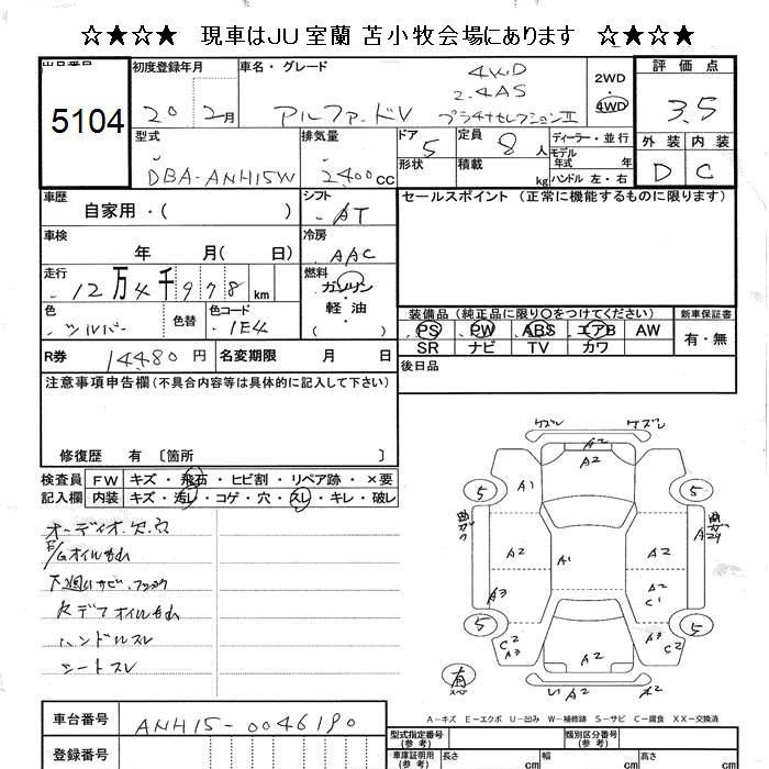 TOYOTA ALPHARD V 4WD AS PLATINUM SELECTION 2 - лот 5104