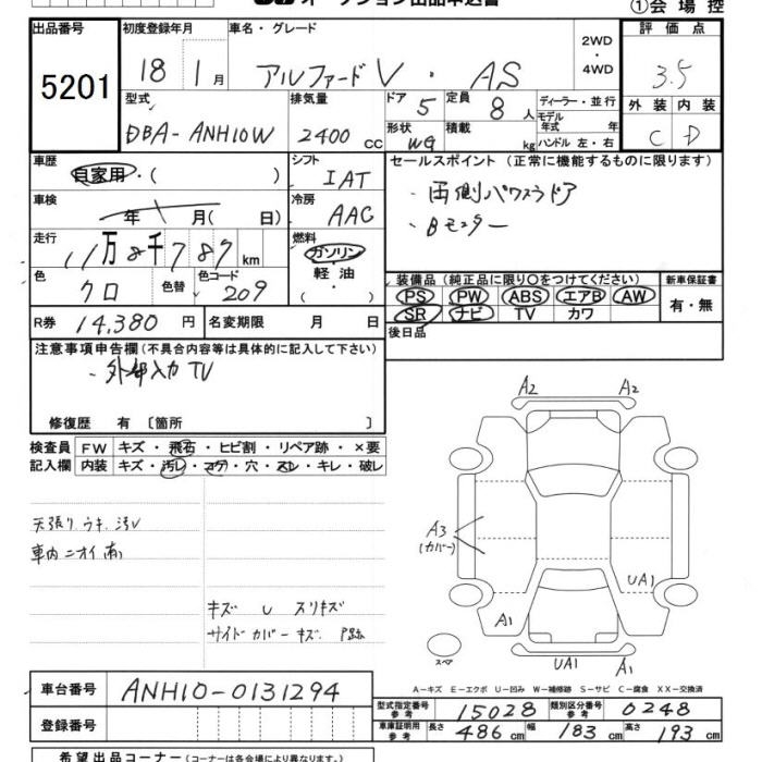 TOYOTA ALPHARD V AS - лот 5201