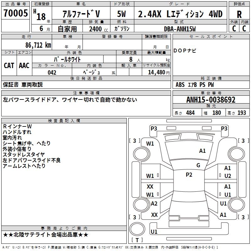 TOYOTA ALPHARD V 2.4AX L EDITION 4WD - лот 70005