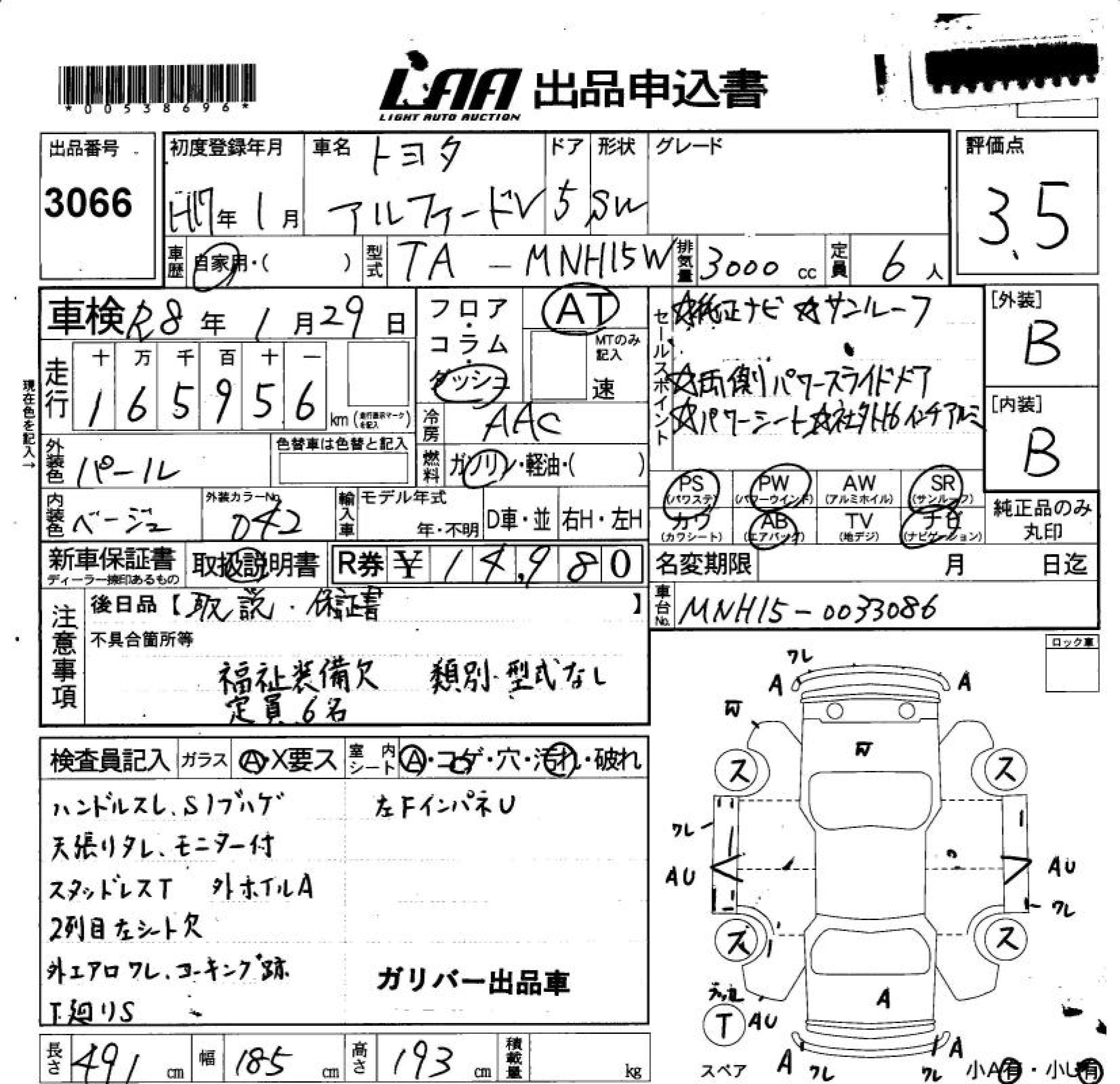 TOYOTA ALPHARD V - лот 3066