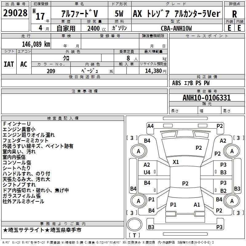 TOYOTA ALPHARD V AX TRESOR ALCANTARA VER - лот 29028