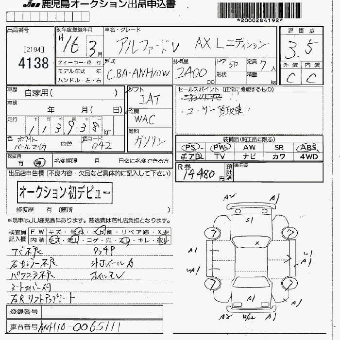 TOYOTA ALPHARD V AX L EDITION - лот 4138