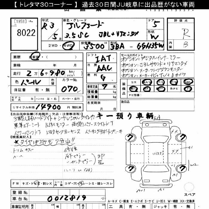 TOYOTA ALPHARD - лот 8022