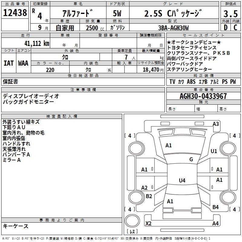 TOYOTA ALPHARD 2.5S C PACKAGE - лот 12438