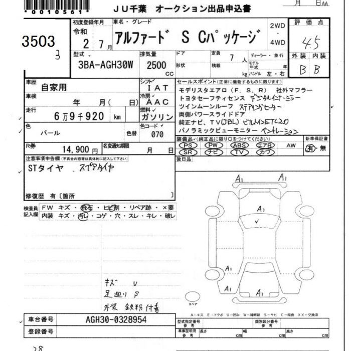 TOYOTA ALPHARD S C PACKAGE - лот 3503
