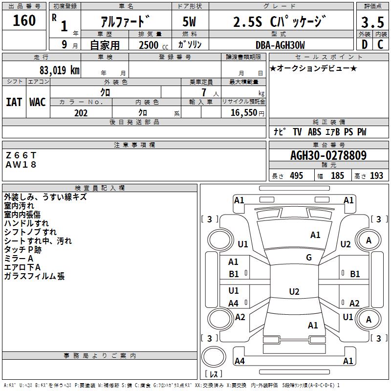 TOYOTA ALPHARD 2.5S C PACKAGE - лот 160