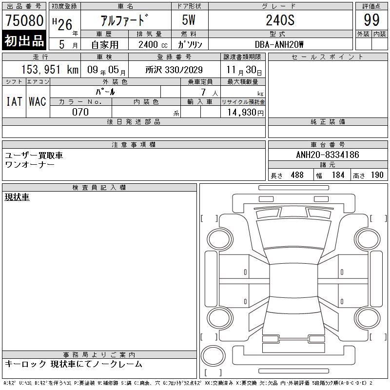 TOYOTA ALPHARD 240S - лот 75080