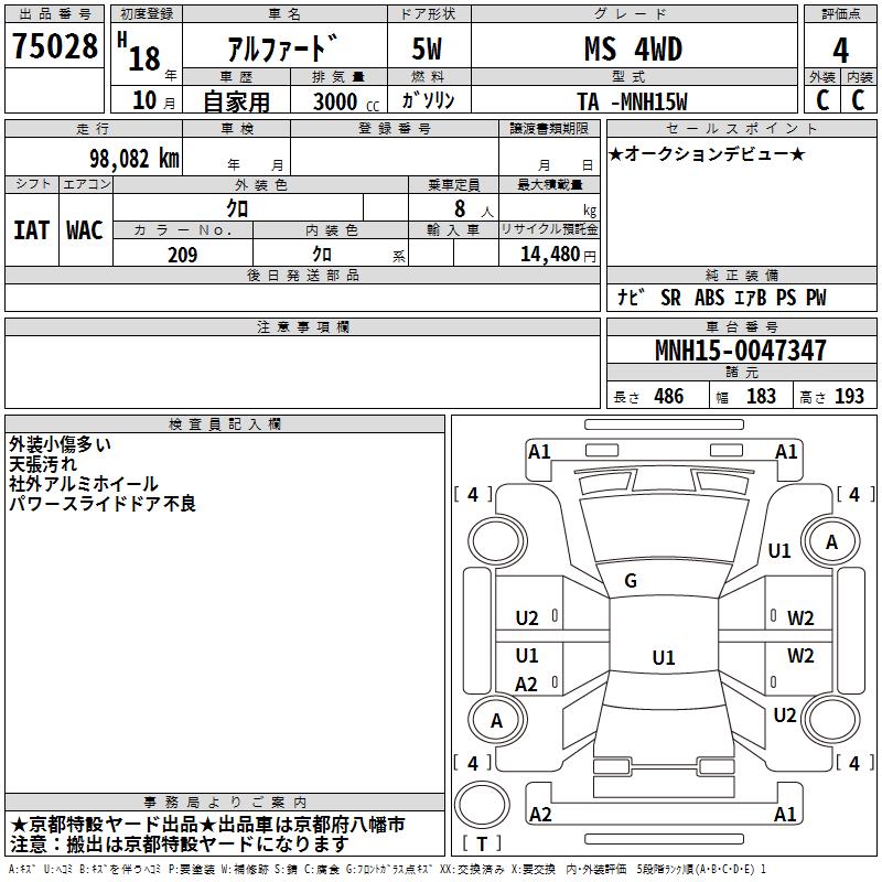 TOYOTA ALPHARD MS 4WD - лот 75028