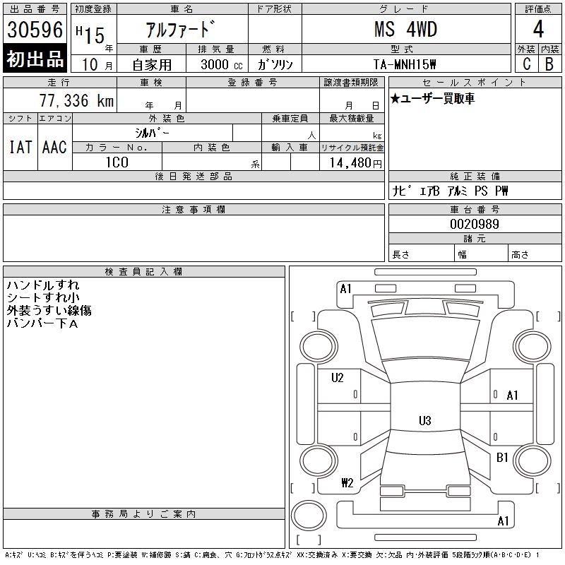 TOYOTA ALPHARD MS 4WD - лот 30596