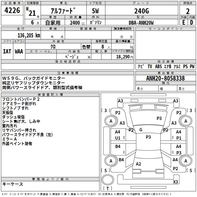TOYOTA ALPHARD 240G - лот 4226