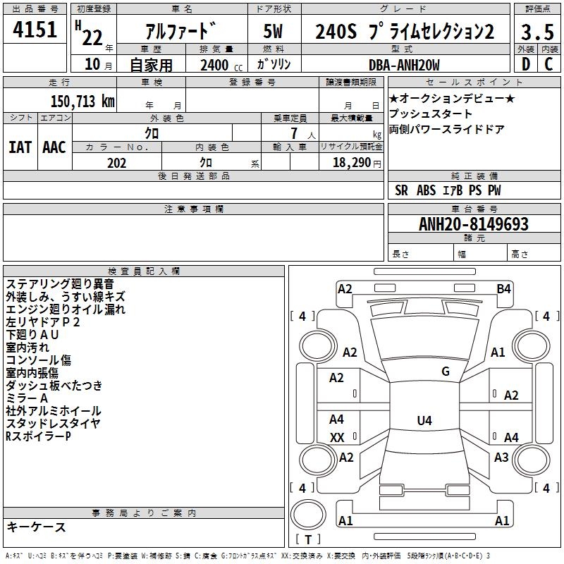 TOYOTA ALPHARD 240S PRIME SELECTION 2 - лот 4151