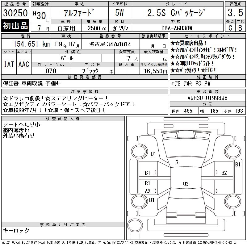 TOYOTA ALPHARD 2.5S C PACKAGE - лот 30250