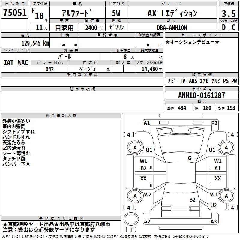 TOYOTA ALPHARD AX L EDITION - лот 75051