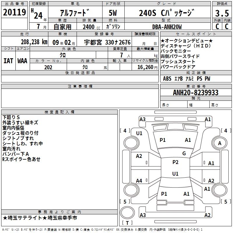 TOYOTA ALPHARD 240S C PACKAGE - лот 20119