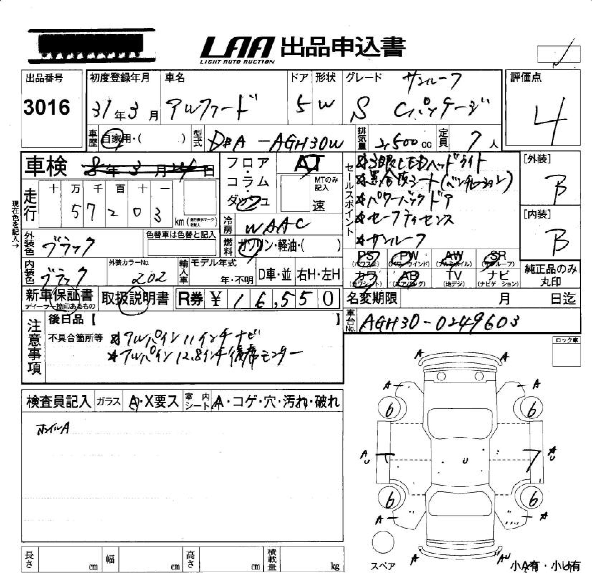 TOYOTA ALPHARD S C PACKAGE SUNROOF - лот 3016