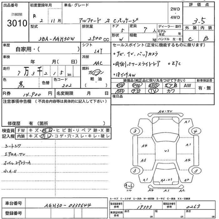 TOYOTA ALPHARD S C PACKAGE - лот 3010
