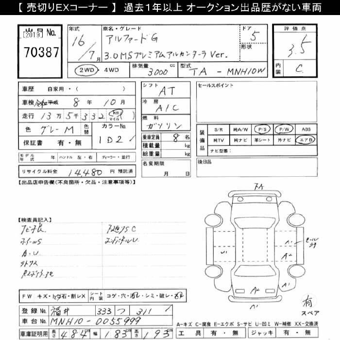 TOYOTA ALPHARD MS PREMIUM "ALCANTARA" VER. - лот 70387
