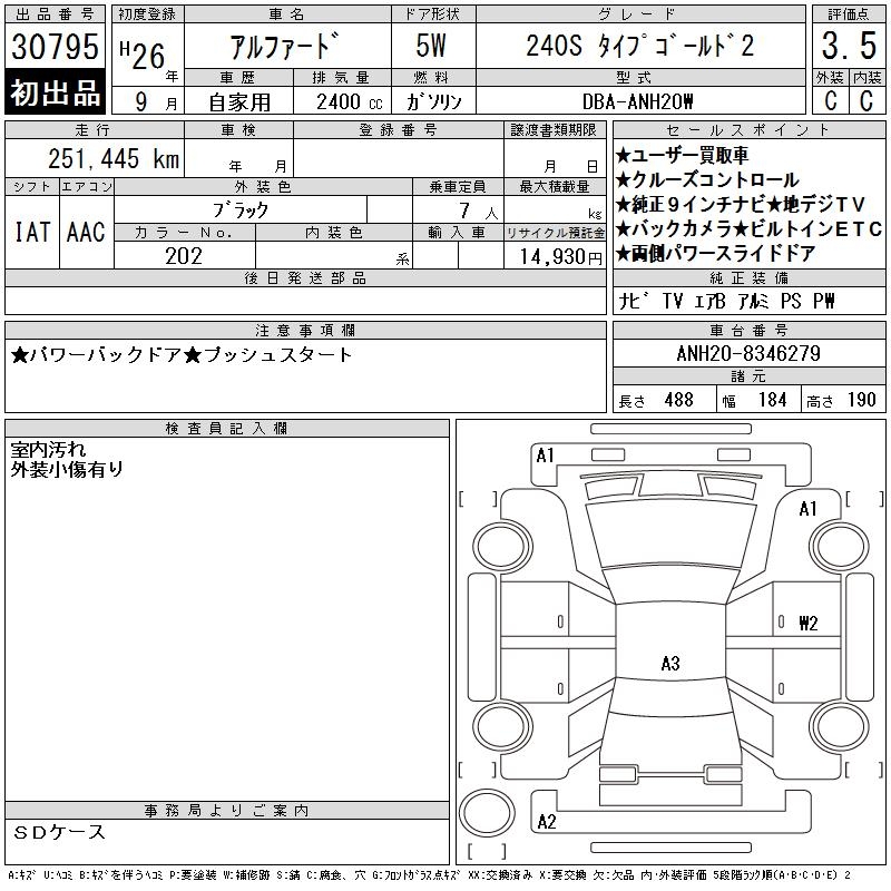 TOYOTA ALPHARD 240S TYPE GOLD 2 - лот 30795