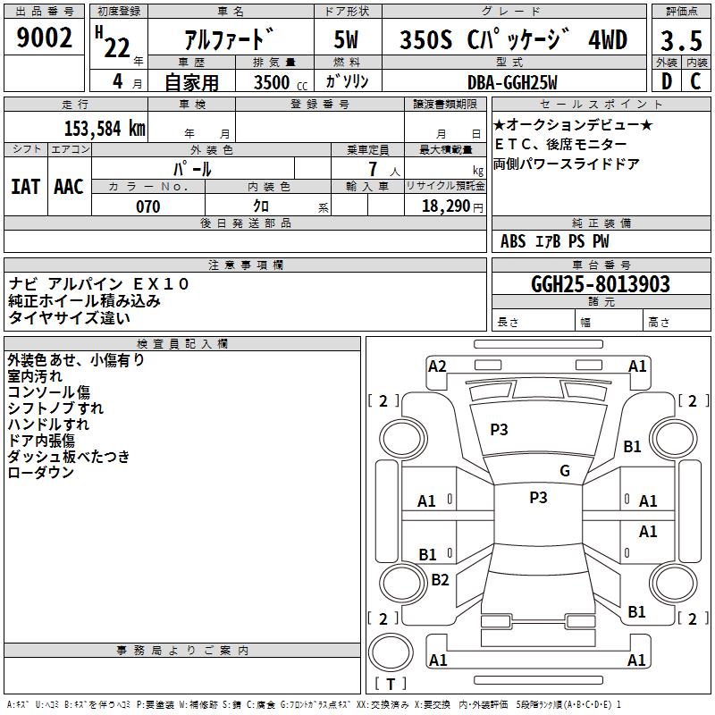 TOYOTA ALPHARD 350S C PACKAGE 4WD - лот 9002
