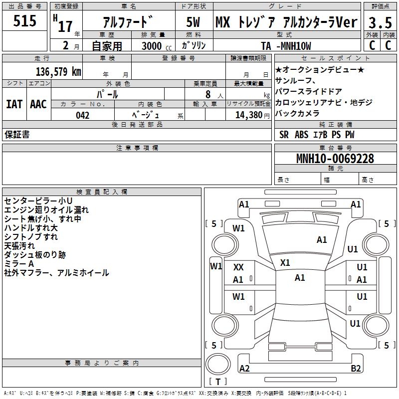 TOYOTA ALPHARD MX TRESOR ALCANTARA VER - лот 515