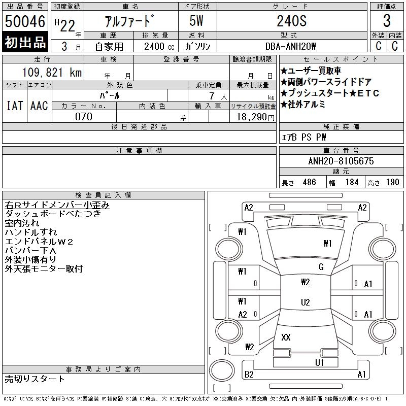 TOYOTA ALPHARD - лот 50046