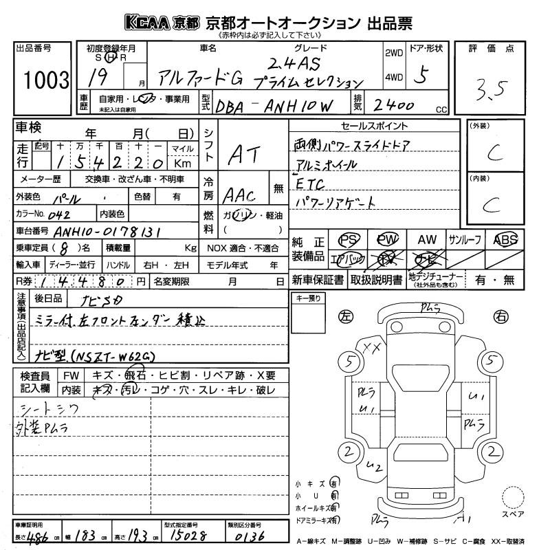 TOYOTA ALPHARD G - лот 1003