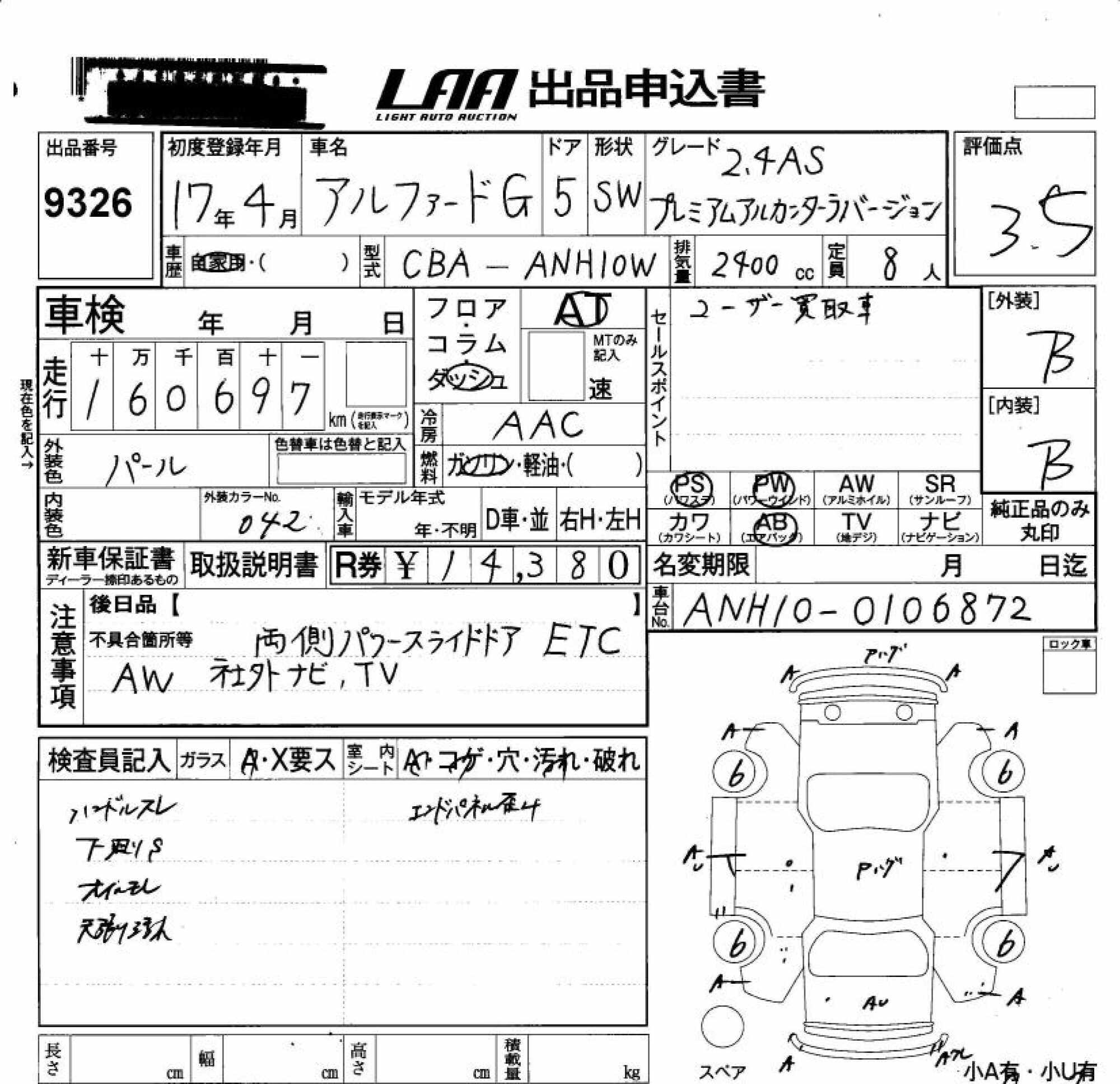 TOYOTA ALPHARD G - лот 9326
