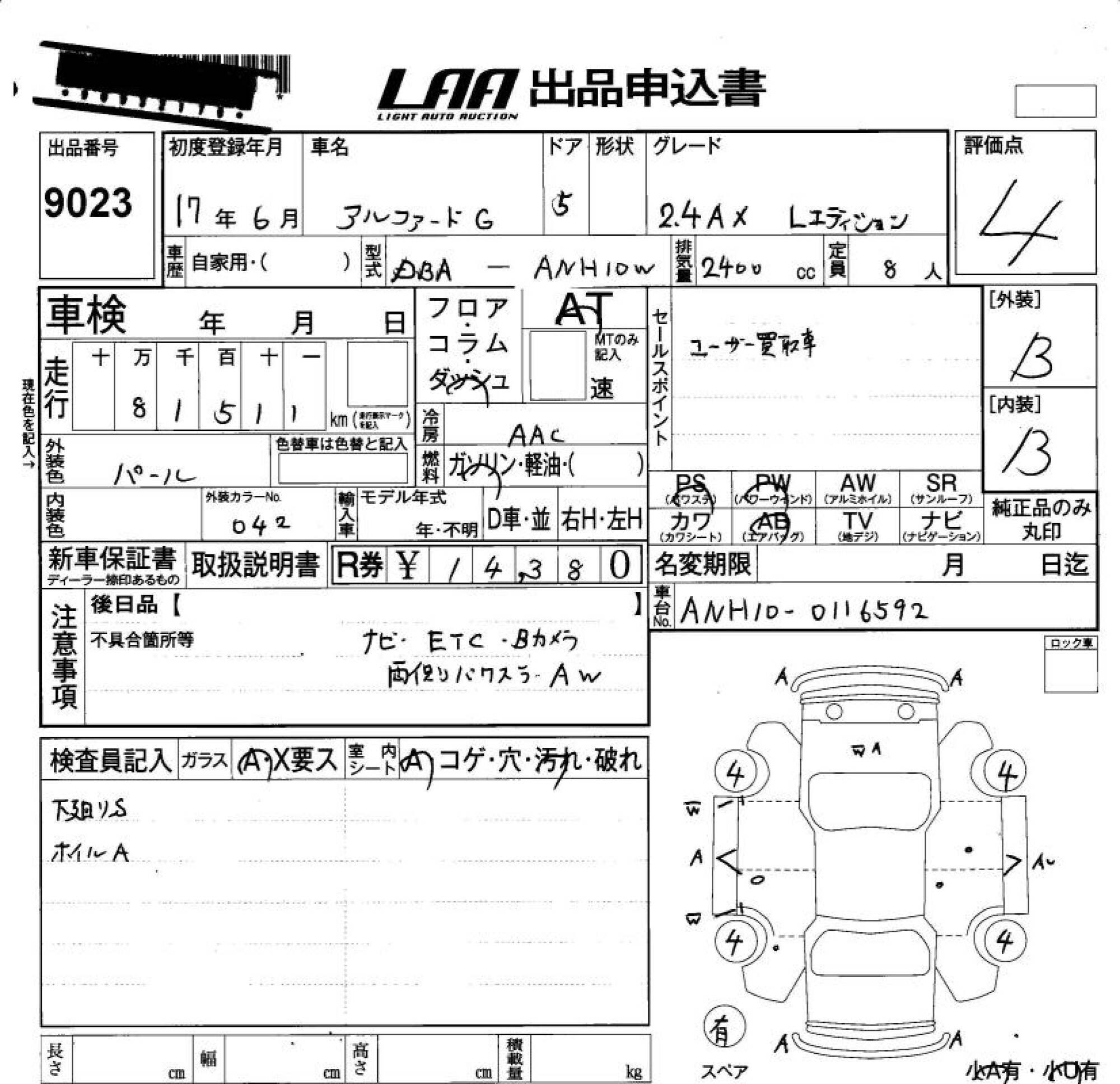 TOYOTA ALPHARD G - лот 9023