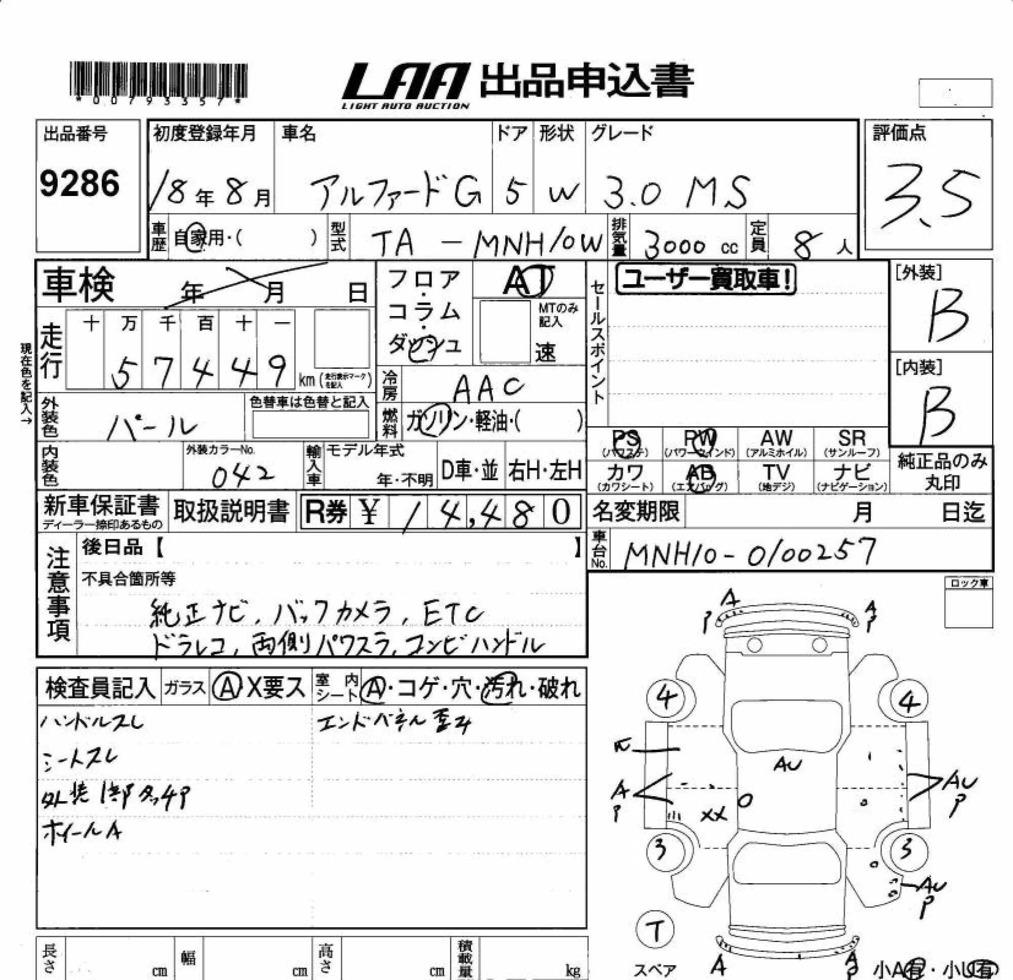 TOYOTA ALPHARD G - лот 9286