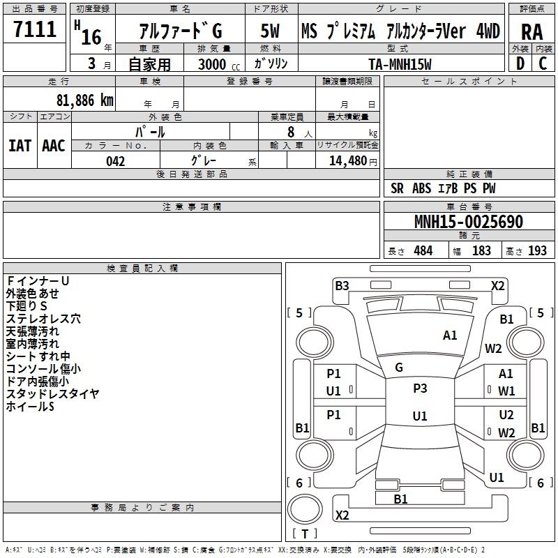 TOYOTA ALPHARD G - лот 7111