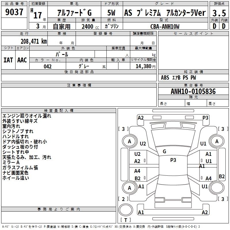 TOYOTA ALPHARD G - лот 9037
