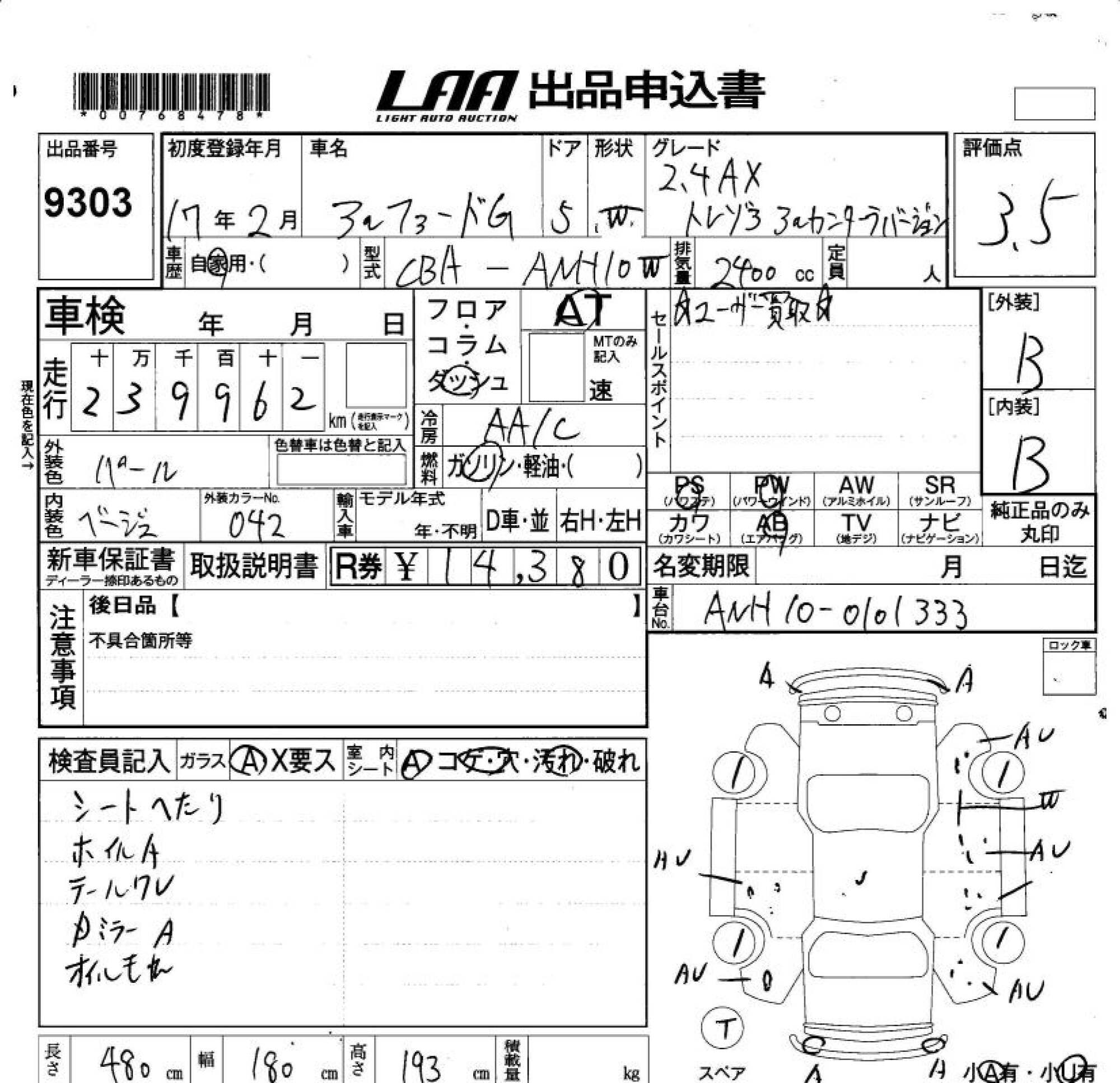 TOYOTA ALPHARD G - лот 9303