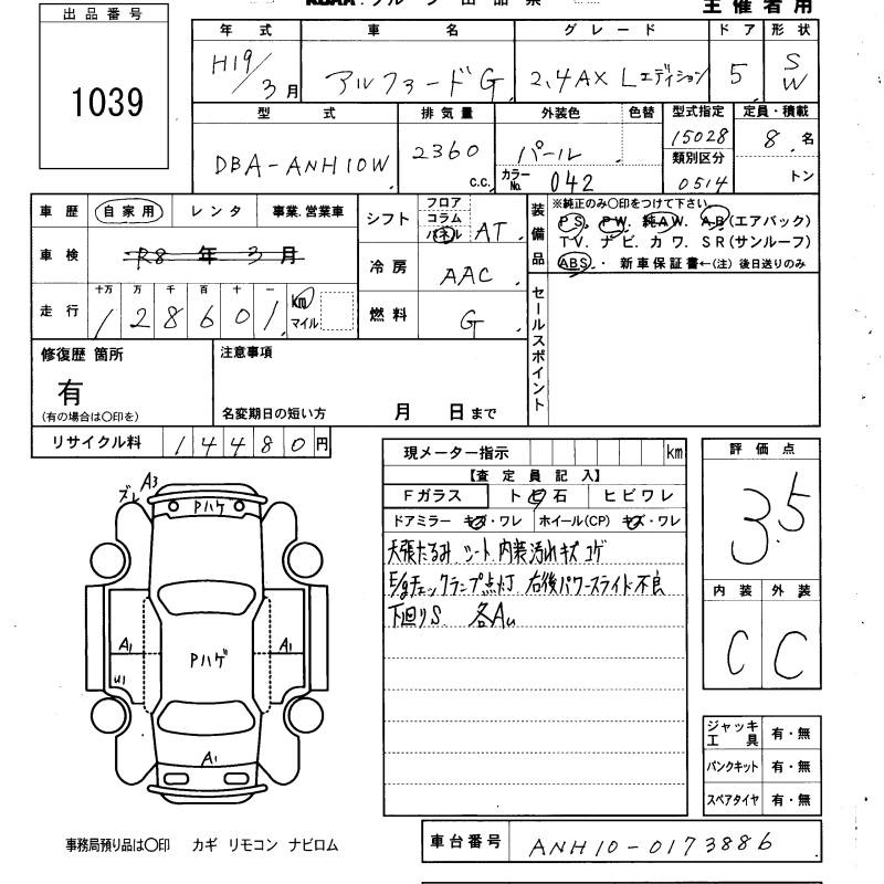 TOYOTA ALPHARD G - лот 1039
