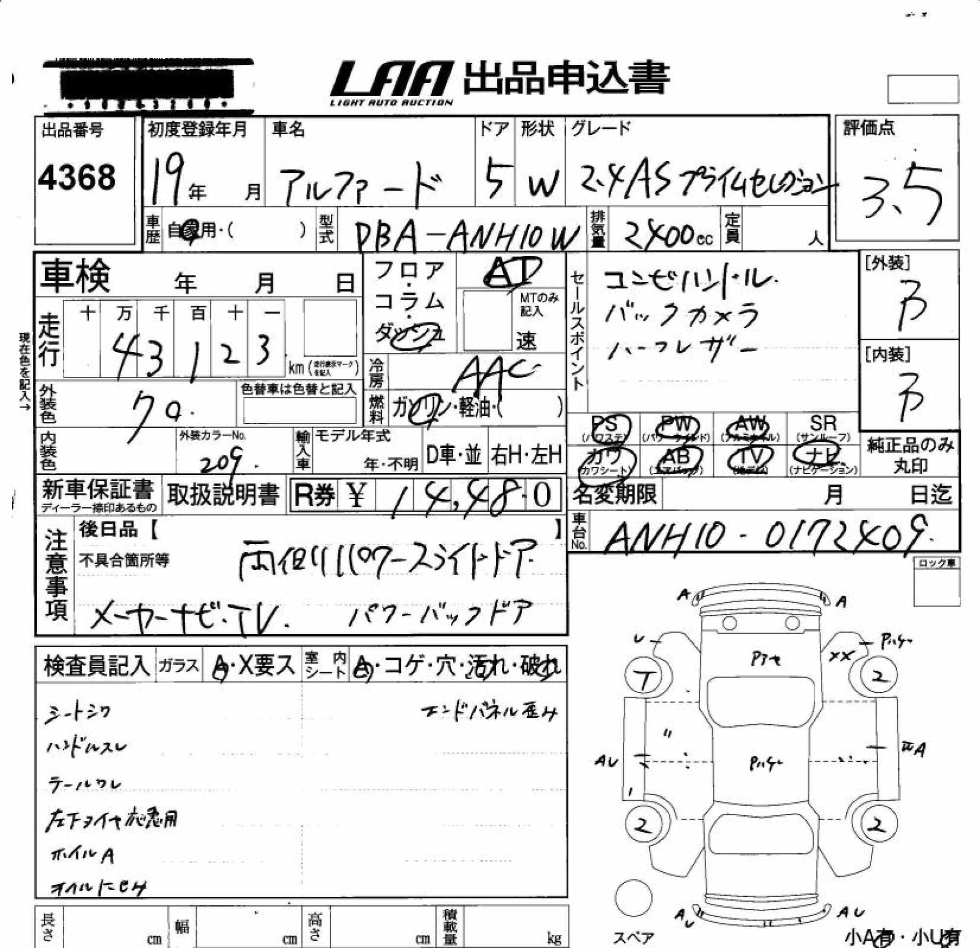 TOYOTA ALPHARD G - лот 4368