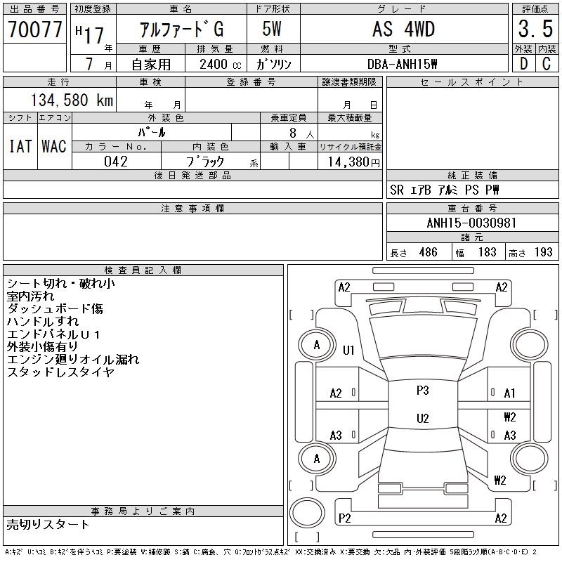 TOYOTA ALPHARD G - лот 70077