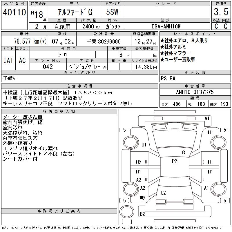 TOYOTA ALPHARD G - лот 40110