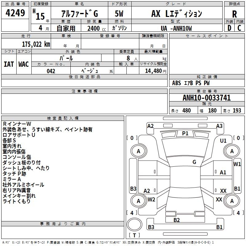 TOYOTA ALPHARD G - лот 4249