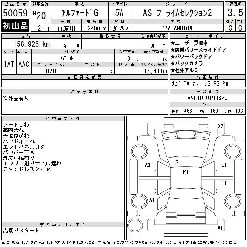 TOYOTA ALPHARD G - лот 50059