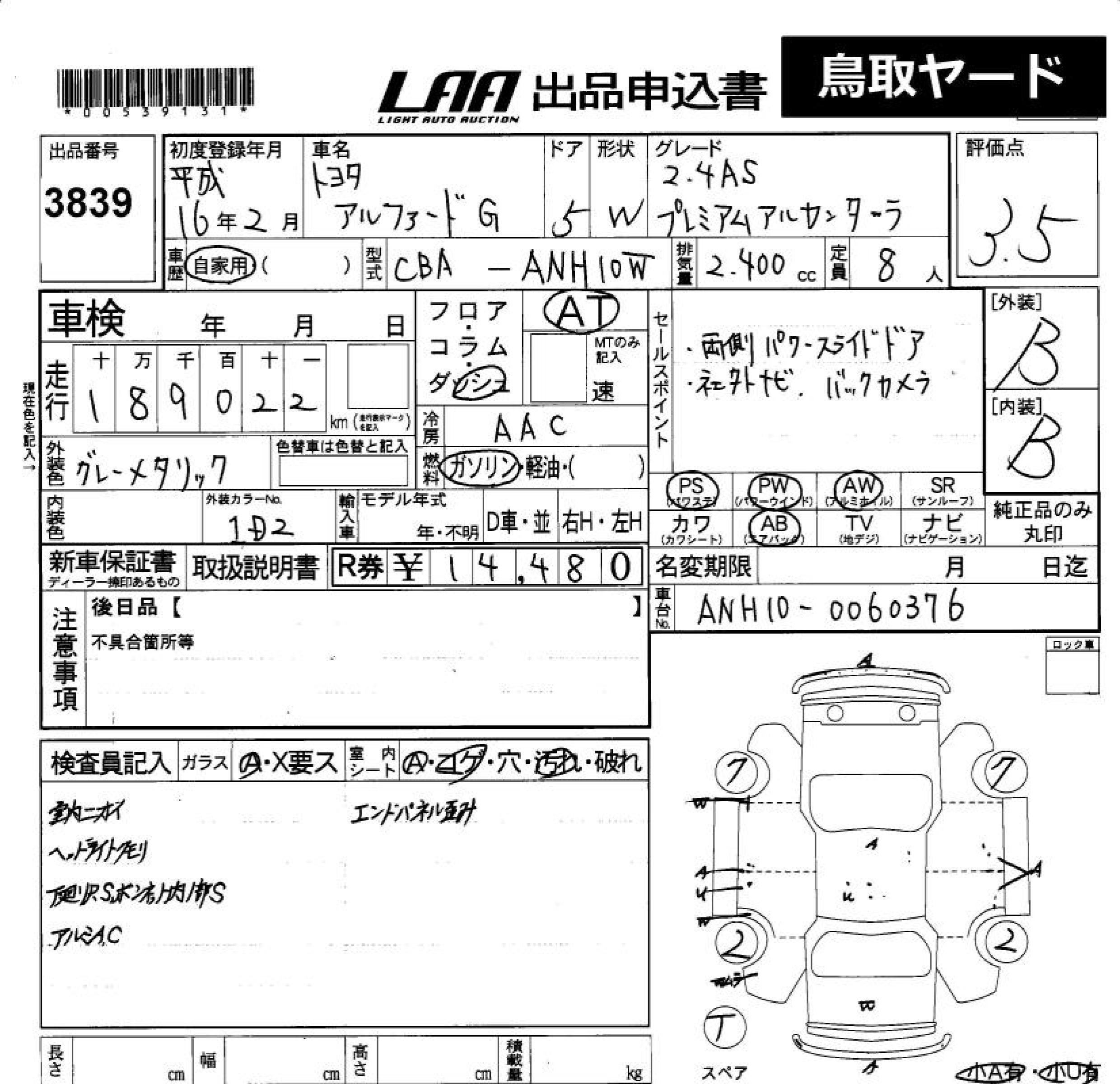 TOYOTA ALPHARD G - лот 3839