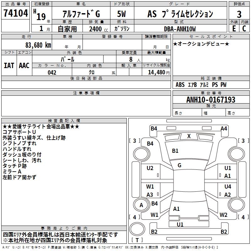 TOYOTA ALPHARD G - лот 74104