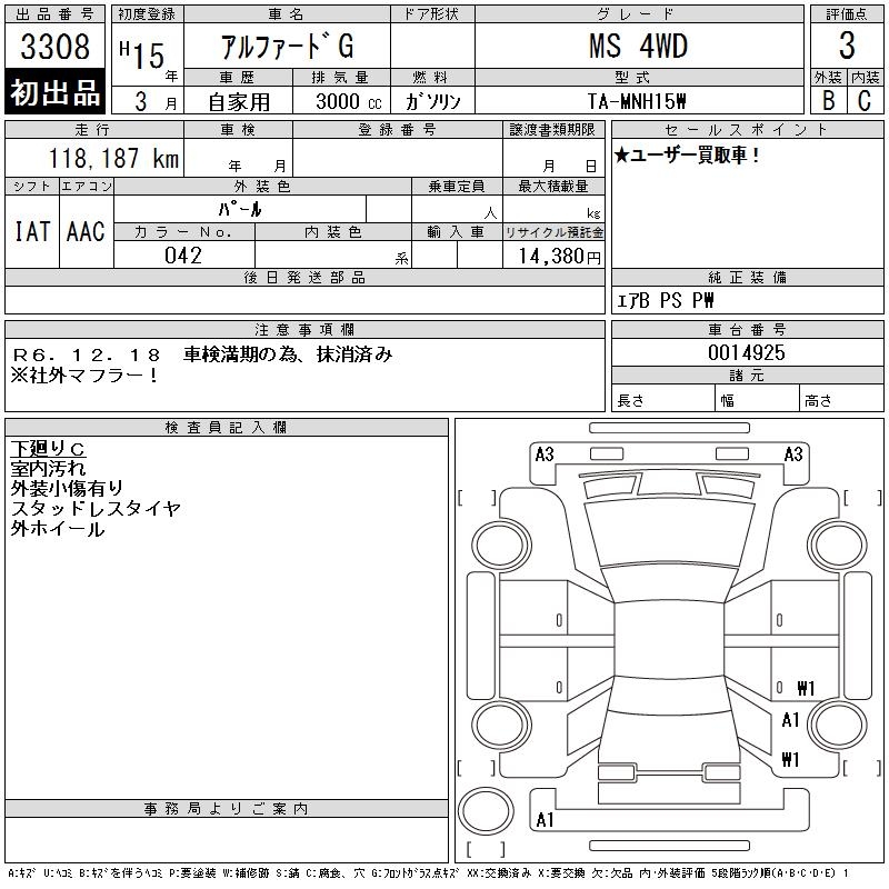 TOYOTA ALPHARD G - лот 3308
