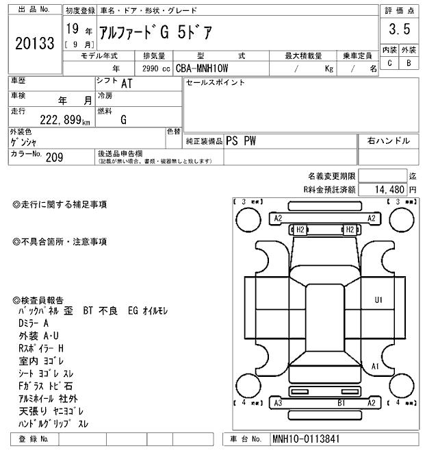 TOYOTA ALPHARD G - лот 20133