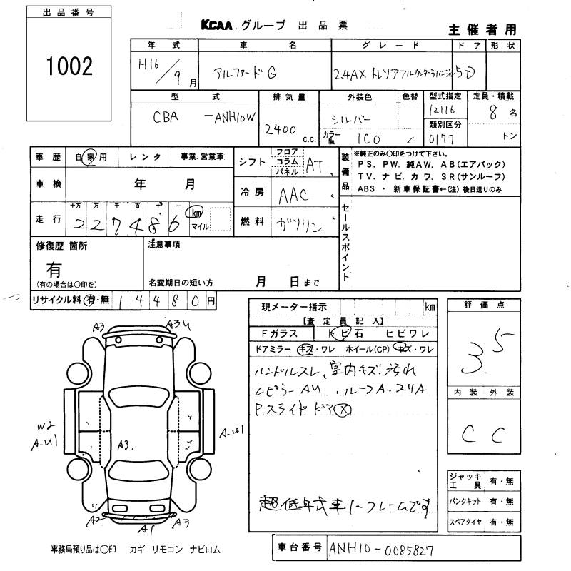 TOYOTA ALPHARD G - лот 1002