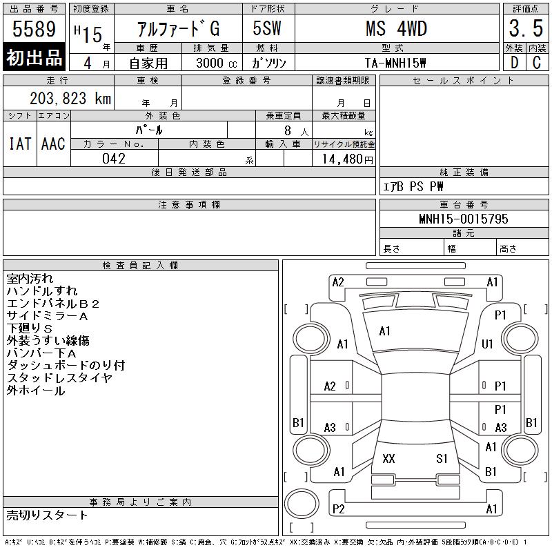 TOYOTA ALPHARD G - лот 5589