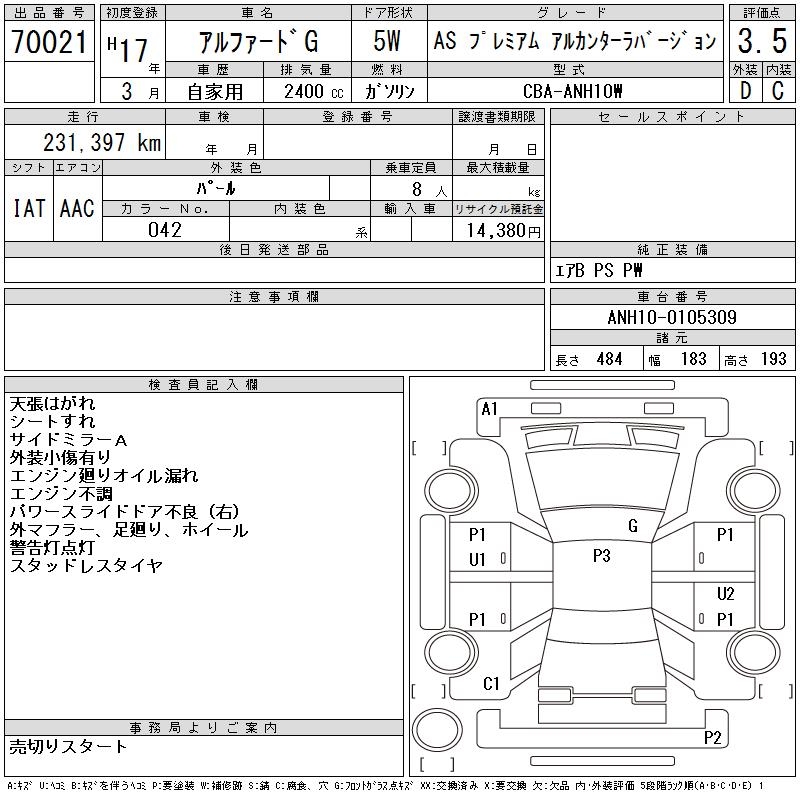 TOYOTA ALPHARD G - лот 70021