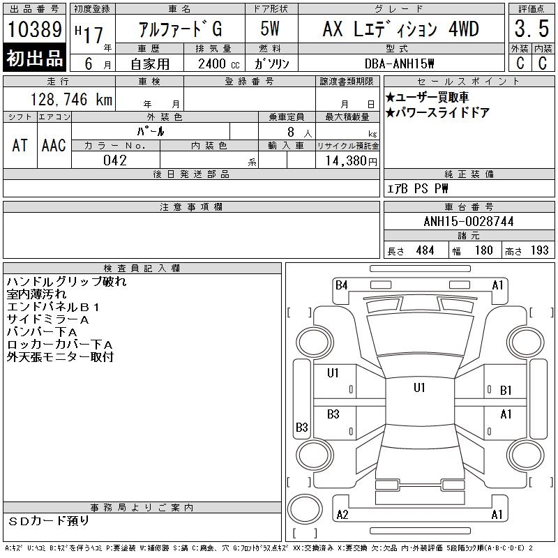 TOYOTA ALPHARD G - лот 10389