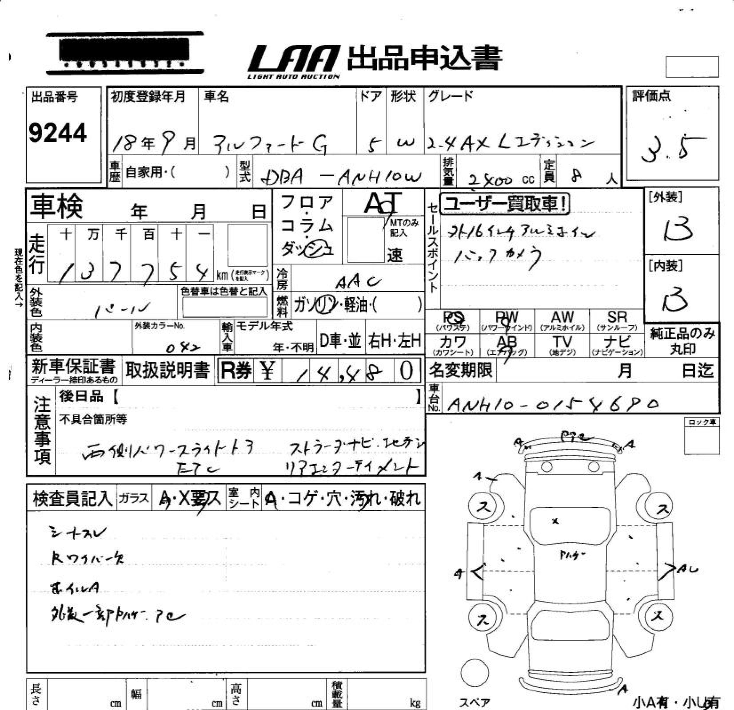 TOYOTA ALPHARD G - лот 9244