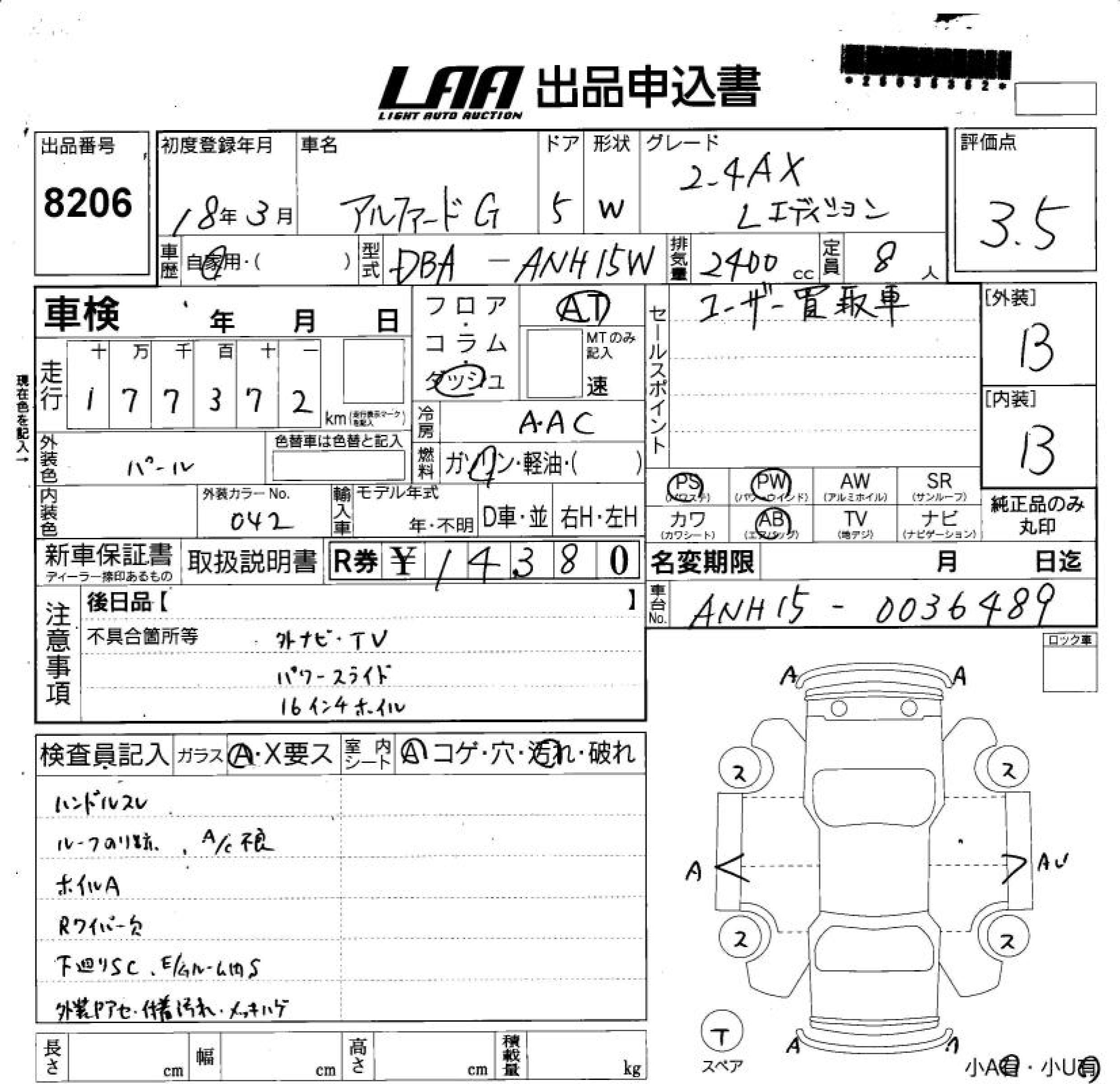 TOYOTA ALPHARD G - лот 8206