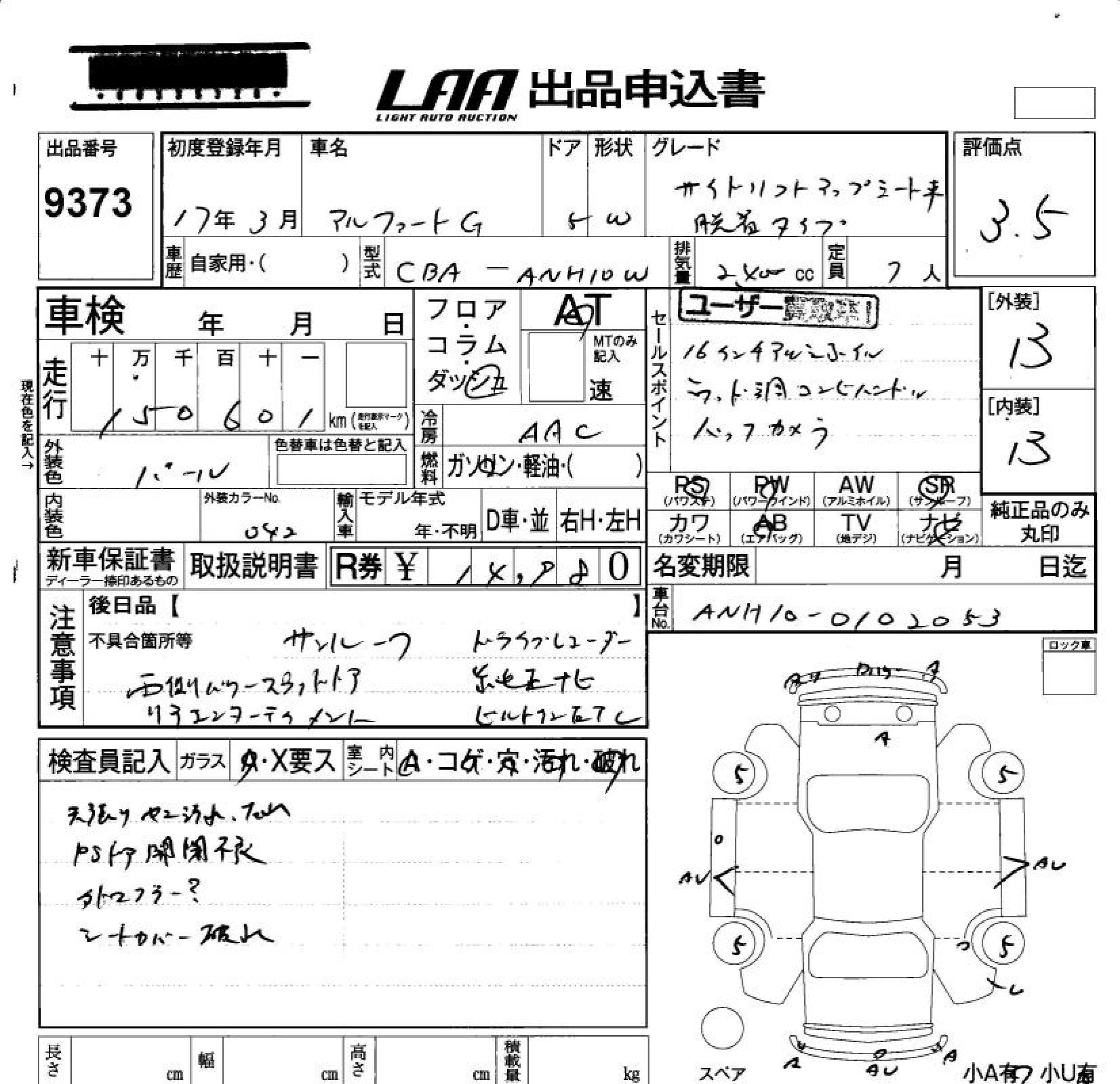 TOYOTA ALPHARD G - лот 9373