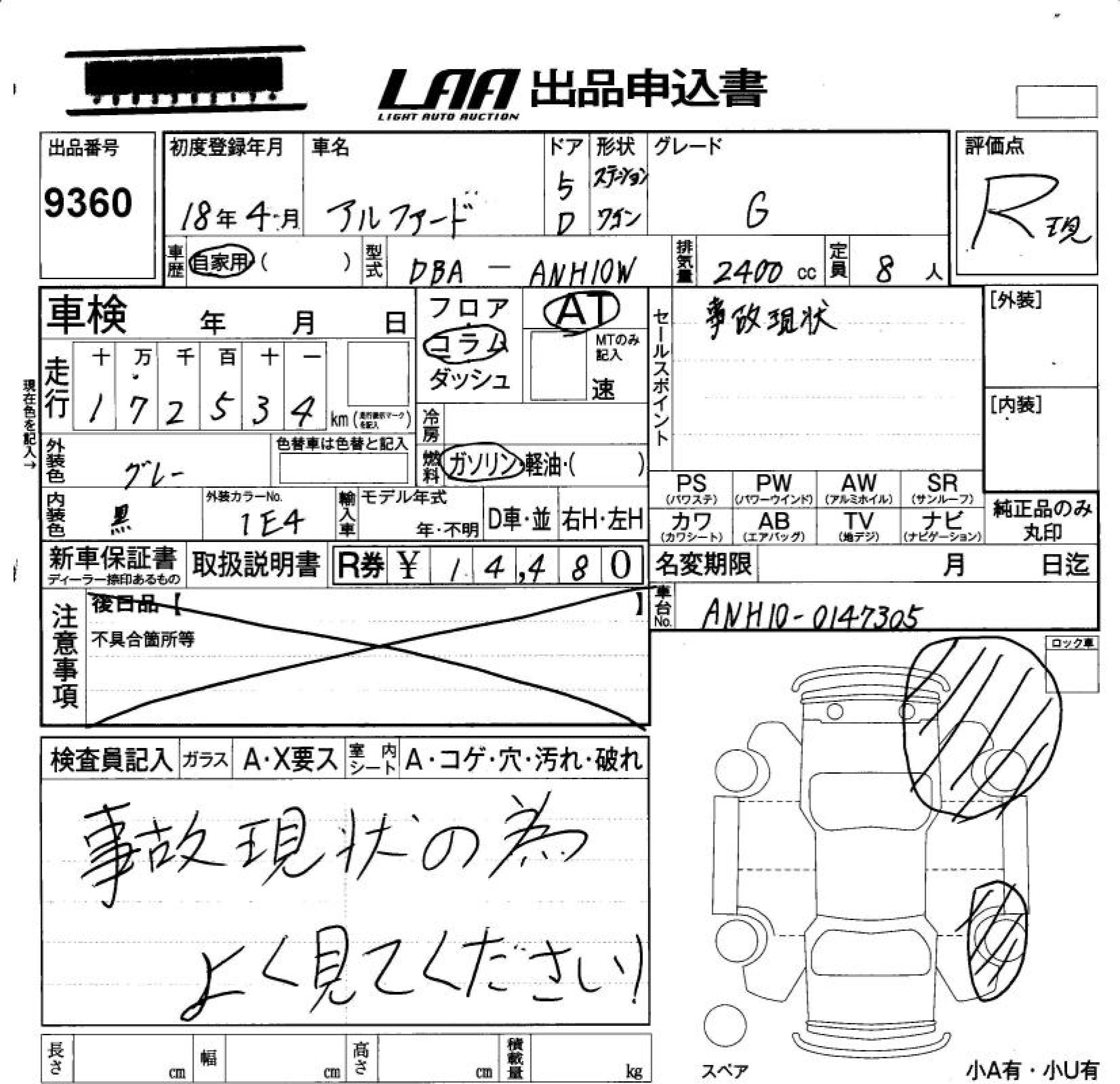 TOYOTA ALPHARD G - лот 9360